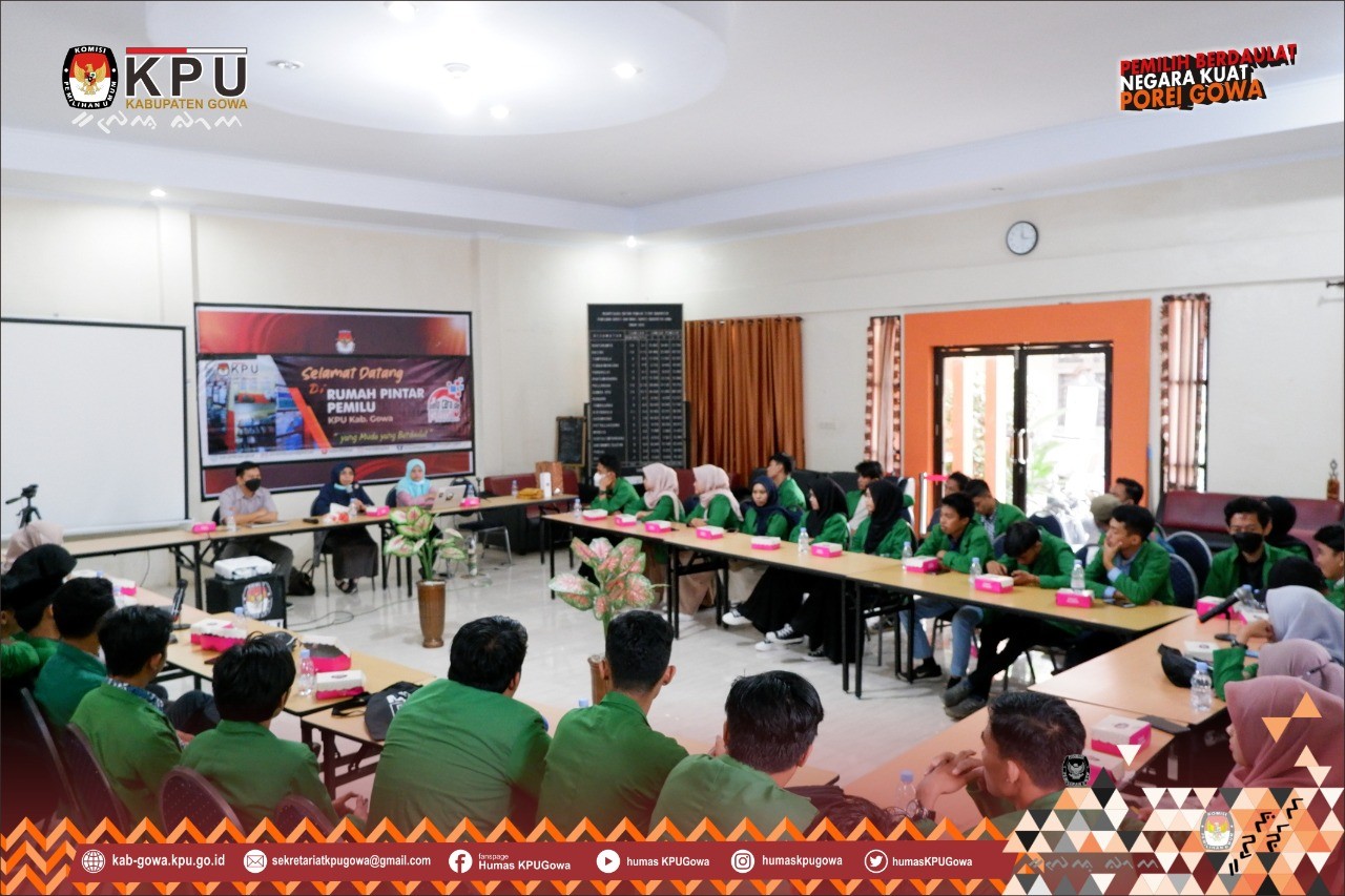 Kegiatan ini dimulai dengan mengenalkan Rumah Pintar Pemilu (RPP) yang ada di KPU Kabupaten Gowa, dilanjutkan dengan pre test untuk mengetahui sejauhmana pengetahuan kepemiluan para mahasiswa oleh Nuzul Fitri, Anggota KPU Divisi Sosialisasi, SDM dan Parmas.