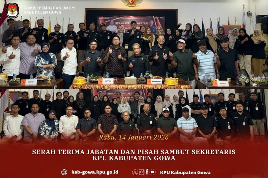 Gowa, kab-gowa.kpu.go.id - Komisi Pemilihan Umum (KPU) Kabupaten Gowa telah melaksanakan acara serah terima jabatan dan lepas sambut Sekretaris yang berlangsung di Aula KPU Kabupaten Gowa. Rabu, (14/1/2026).