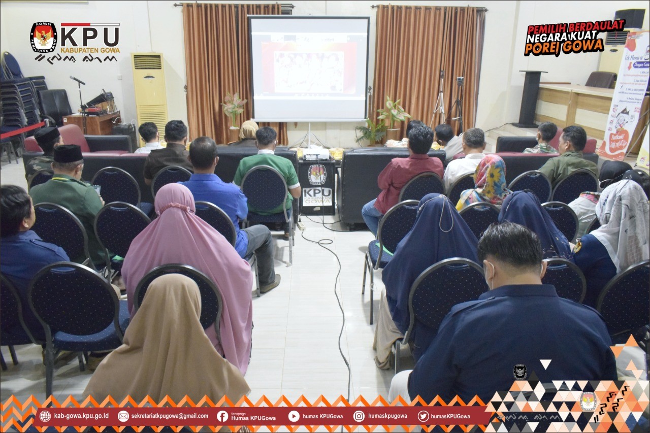 Acara digelar di aula kantor KPU Gowa, yang diikuti Ketua KPU Gowa Muhtar Muis, seluruh komisioner, dan staf KPU Gowa. Peserta mengikuti acara tersebut melalui media zoom meeting.