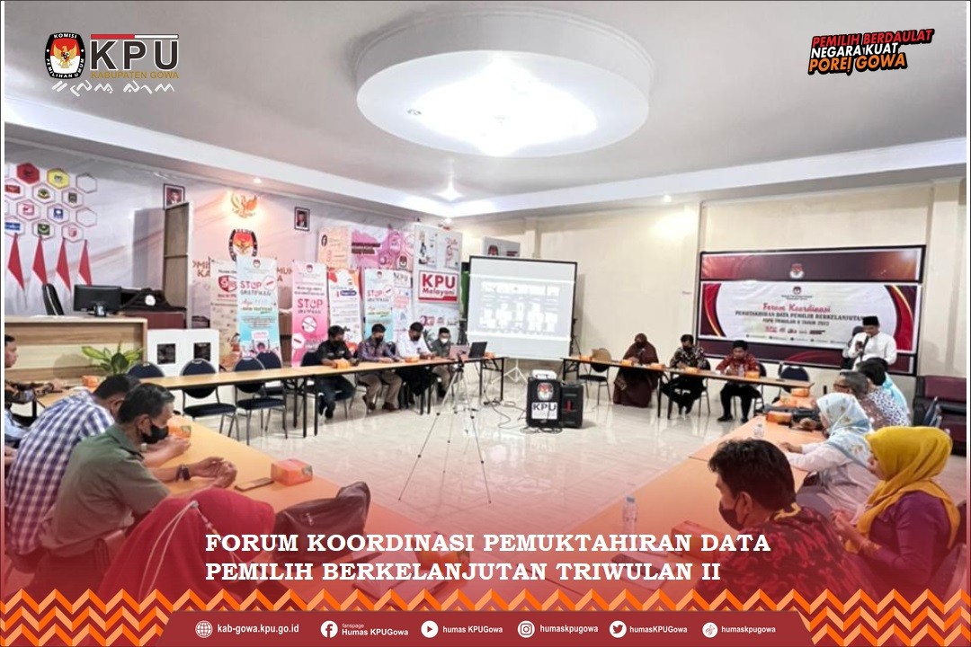 Porei Gowa# Komisi Pemilihan Umum (KPU) Kabupaten Gowa menggelar Forum Koordinasi Pemutakhiran Data Pemilih Berkelanjutan (PDPB) Triwulan II Tahun 2022 , Kamis 23 Juni 2022 di Aula Kantor KPU Gowa.