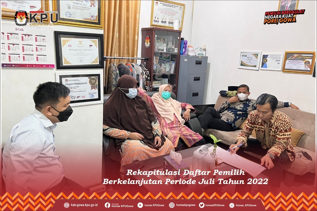 Komisi Pemilihan Umum Kabupaten Gowa melaksanakan Rapat Pleno Rekapitulasi Pemutakhiran Data Pemilih Berkelanjutan (PDPB) Periode Juli Tahun 2022, Senin (01/08/2022).