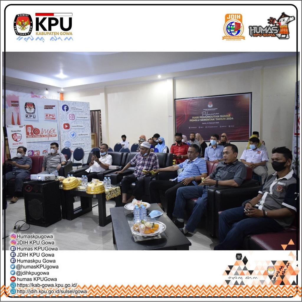 #Teman Pemilih Dalam rangka Peluncuran Hari Pemungutan Suara Pemilu Serentak Tahun 2024 KPU Kabupaten Gowa menggelar acara nonton bersama secara daring dengan mengundang Bawaslu Kabupaten Gowa, Forkompimda Kabupaten Gowa dan perwakilan Partai Politik Tingkat Kabupaten Gowa bertempat di Aula Kantor KPU Kabupaten Gowa Senin, (14/02/2022).