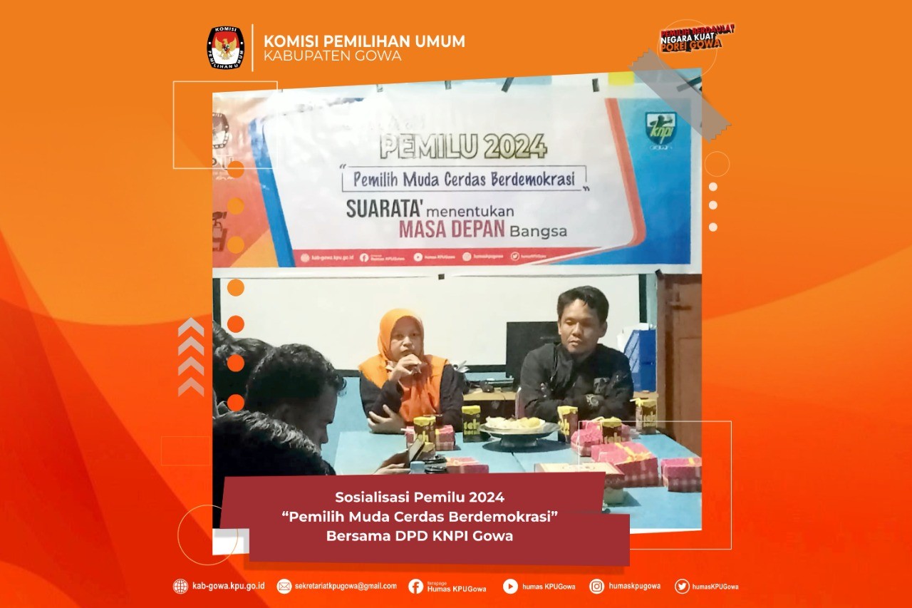 Dalam rangka sosialisasi dan pendidikan pemilih, KPU Kabupaten Gowa bertandang ke sekretariat KNPI Gowa. (Minggu,5 Juni 2022). Melalui kegiatan kelas pemilu, diharapkan para pengurus KNPI Gowa dapat menambah wawasan dan informasinya terkait pelaksanaan Pemilu tahun 2024 nantinya. Sekitar 30 orang pengurus KNPI menghadiri kegiatan tersebut, ikut terlibat dalam diskusi dan menyampaikan beberapa usulan untuk peningkatan partisipasi masyarakat di Pemilu nantinya.